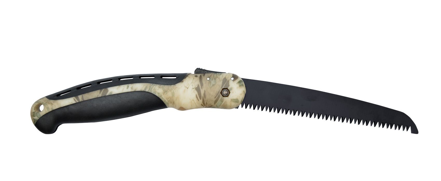 Čepel vyrobená z oceli je ošetřena černou povrchovou úpravou. Dvojitý uzamykací systém ji drží bezpečně na místě po celou dobu používání. Ergonomická rukojeť ze syntetického materiálu je navržena tak, aby se otřesy při řezání co nejméně přenášely na ruku. Zuby pilky zabírají pro tlačení i tažení, abyste práci odvedli za polovinu času.