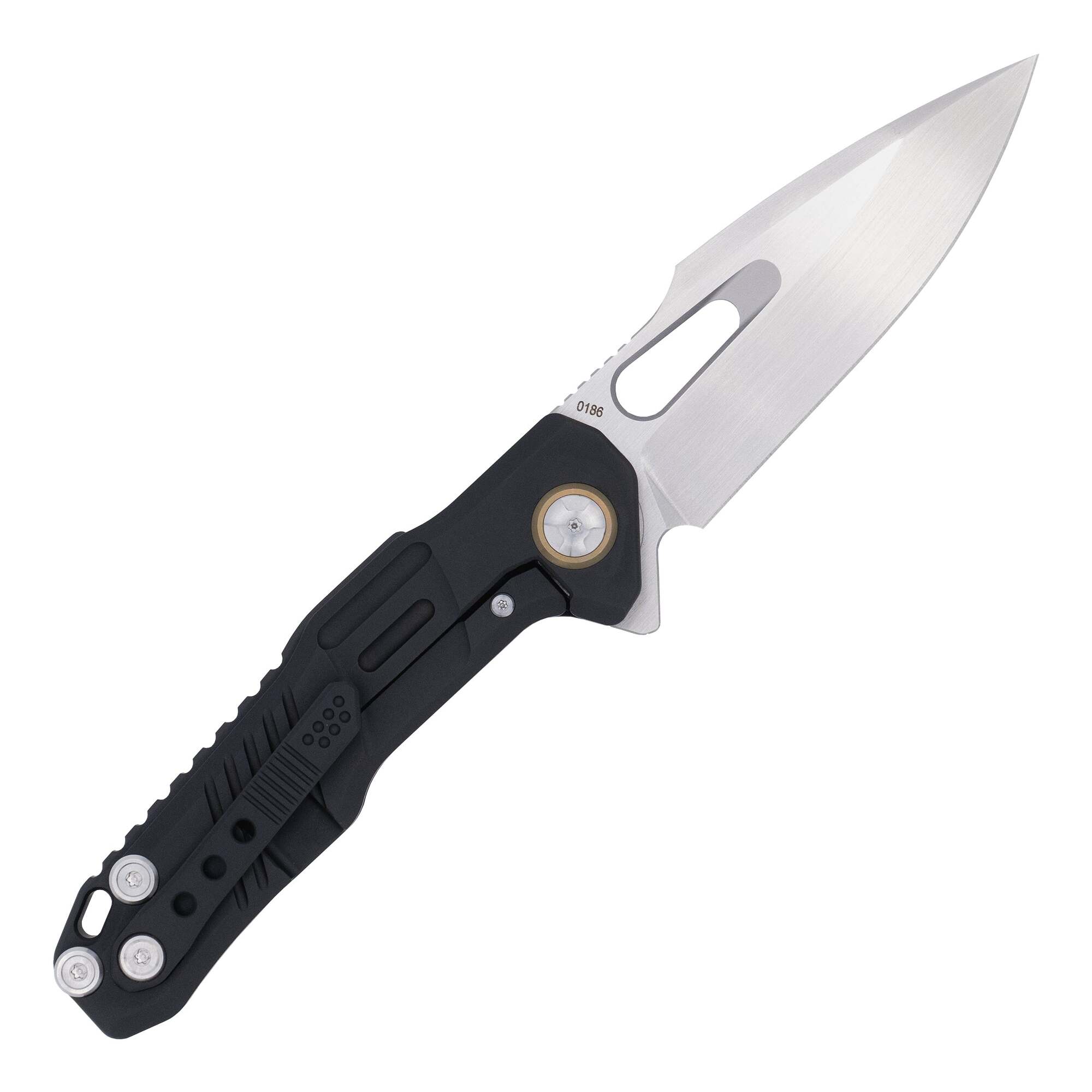 Tento vysoce kvalitní Special Ops Frame-Lock nůž je precizně zpracovaný a výkonný nástroj pro ty, kteří vyžadují nejvyšší standardy od svého EDC vybavení. Tento výjimečný nůž se pyšní elegantním a působivým designem s černou rukojetí z TC4 titanu, která kombinuje odolnost a vizuální sofistikovanost. Special Ops lze otevřít pomocí flipperu nebo otvoru na palec, přičemž keramická kuličková ložiska zajišťují eliminaci tření. Čepel typu Harpoon s kartáčovaným povrchem nejen přispívá k výraznému vzhledu nože, ale je také známkou jeho vysoké kvality. M390 je vysoce výkonná nerezová ocel známá svou výjimečnou schopností udržet ostří, odolností proti korozi a celkovou houževnatostí, což z ní činí ideální volbu pro různé řezací úkoly. S tip-up clipem (r).
