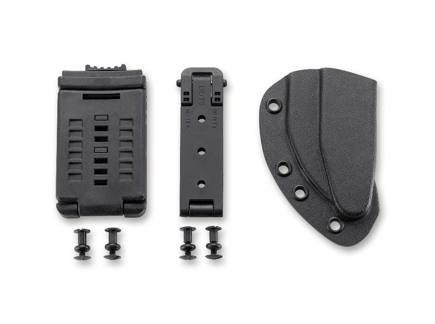 Černé kydexové pouzdro CRKT pro zavírací nůž typu karambit CRKT provokovat. Dodává se s dvěma upevňovacími sponami nebo adaptérem na opasek pro různé možnosti nošení.