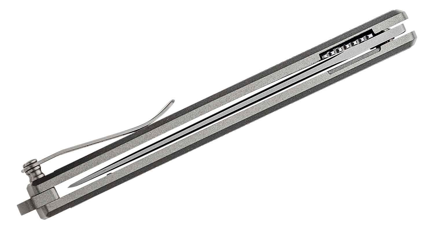 Čepel vyrobená z nerezové oceli 1.4116 se otevírá flipperem a v otevřené pozici ji drží pojistka Linerlock. Základ rukojeti je vyroben z nerezové oceli s vložkami z GRN. Nůž je vybaven klipem pro nošení v kapse.