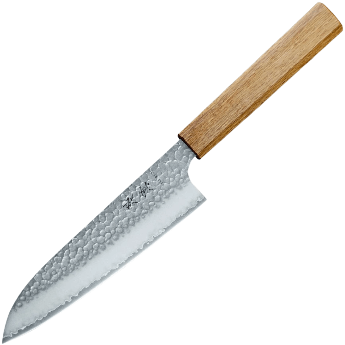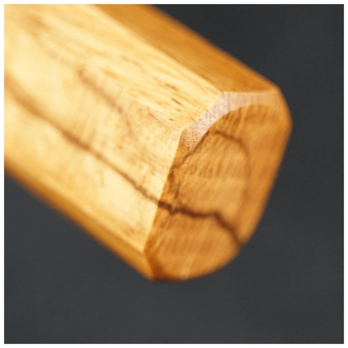 Rukojeť ve tvaru osmiúhelníku je vyrobena z krásného japonského dubového dřeva. Střenky jsou navrženy tak, aby dokonale padly do ruky a poskytovaly pohodlí. Čepele jsou perfektně vyvážené a zabraňují únavě ruky. To zajišťuje maximální kontrolu a přesnost. Tento nůž je vhodný pro praváky i leváky.