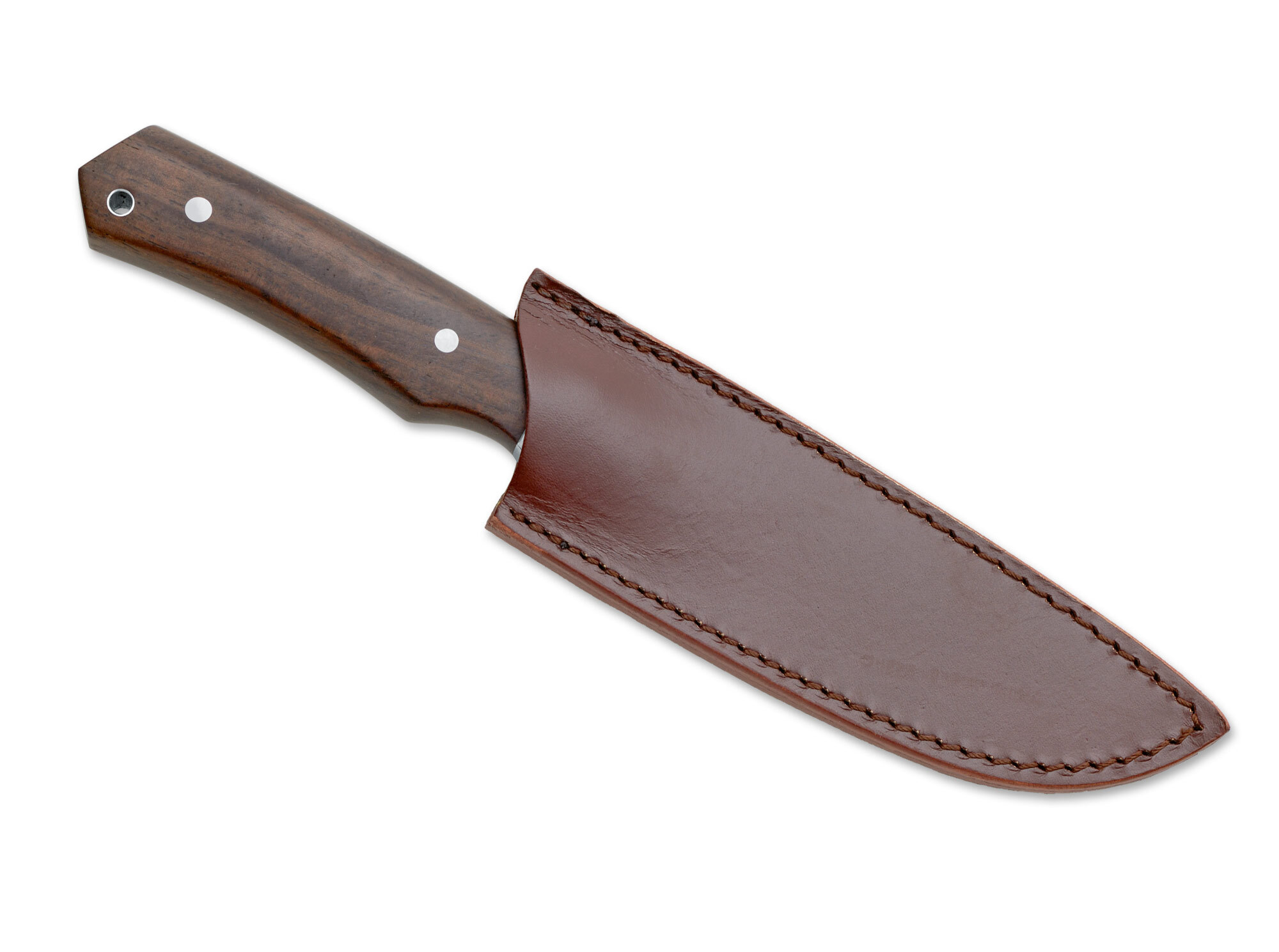 Outdoorový nůž Fox Knives BlackFox BF-010 WD je ideální pro myslivce. Má pevnou čepel s hladkou hranou z nerezavějící oceli 440A se saténovou povrchovou úpravou. Rukojeť je ze santalového dřeva se záštitou na ochranu rukou z nerez oceli, s dírkou na šňůrku ve spodní části. Dodává se s koženým pouzdrem.