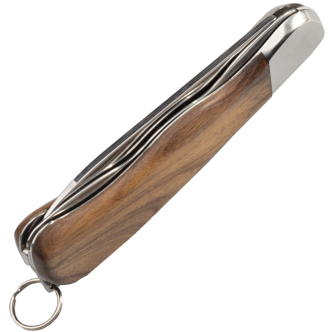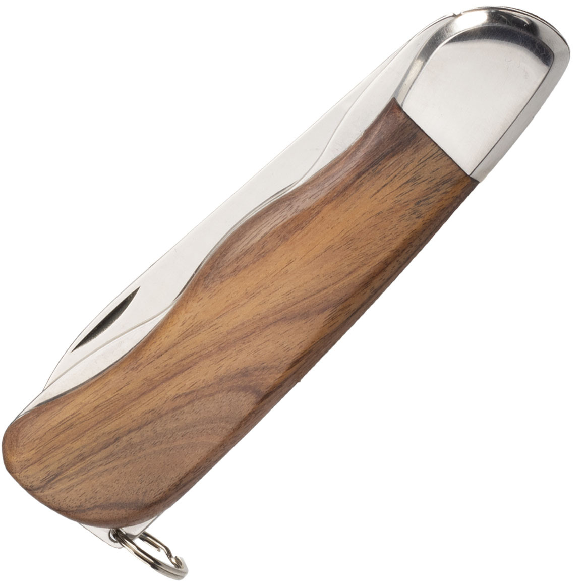 Zavírací kapesní nůž Mikov 116-ND-1 AK / KP má čepel z nerez oceli 420 s pojistkou Linerlock. Rukojeť je vyrobena z odolného palisandrového dřeva s kroužkem na uchycení na konci. Dodává se s koženým pouzdrem s logem Mikov.