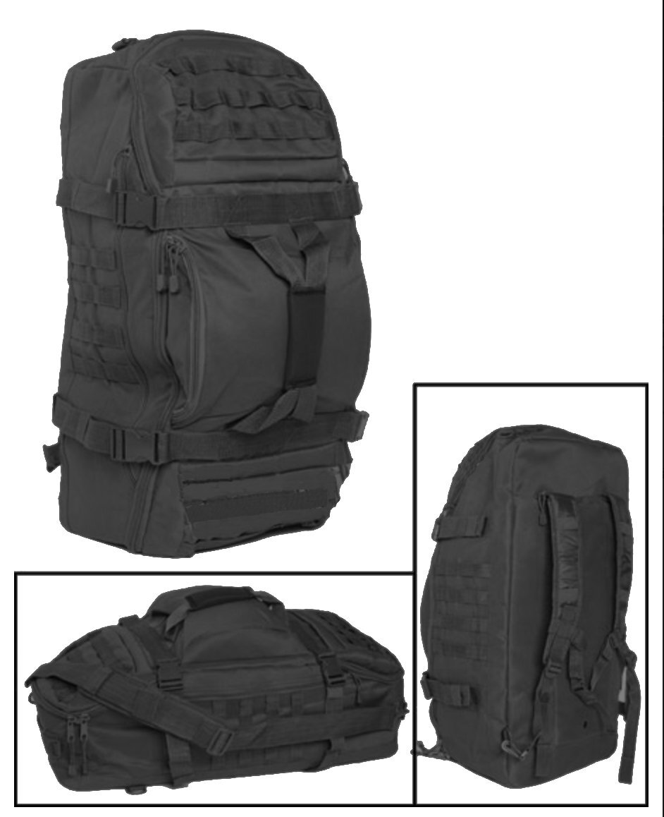 Černý batoh Miltec RECON 3/1 se dá použít jako taška přes rameno, batoh nebo taška na nošení. Má velký hlavní prostor s přihrádkami. Víko s 2 přihrádkami na zip, polstrovaná záda, čalouněné ramenní popruhy, polstrovaná rukojeť, čalouněná, nastavitelný ramenní popruh, mnoho upevňovacích bodů Molle, boční kompresní popruhy, 2 boční kapsy s vnitřními přihrádkami ze síťoviny.