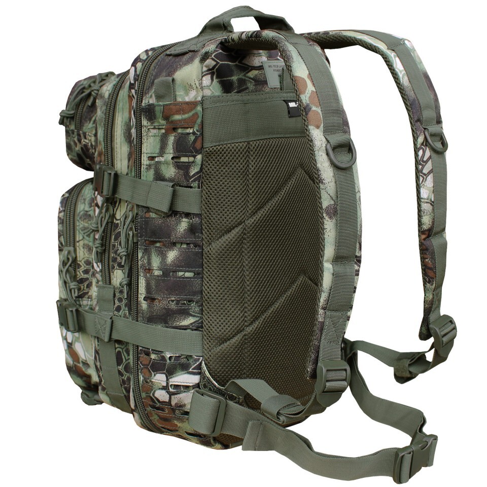 Miltec US ASSAULT PACK SM LASER CUT je útočný batoh střední velikosti, vhodný na 1-2 denní akce. Po celém batohu se nachází množství pevných popruhů, dohromady má čtyři oddělení (dvě velké, jedno střední, jedno malé) - uvnitř množství kapes, síťových i na zipy. Rozměry: cca výška: 45 x šířka: 28 x hloubka: 25 cm.