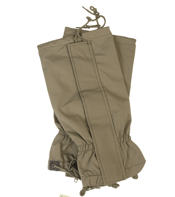 Ochranné návleky na nohu Miltec BW laminát v olivové barvě z 3-vrstvého laminátu (nylon, prodyšná polyuretanová membrána, polyester). Se širokou gumovou páskou s protiskluzovou funkcí ve spodní části a stahovací šňůrkou v oblasti lýtka. Má kovové lanko na upevnění háčků k spodku boty. Zapínají se na zip skrytý za širokou páskou na suchý zip.