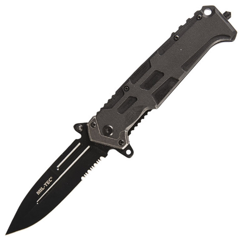 Zavírací nůž od německé firmy Mil-Tec na každodenní použití EDC. Čepel je vyrobena z nerezové oceli 440 s černou povrchovou úpravou. Nůž je vybaven lomítkem na sklo pro nouzové situace.