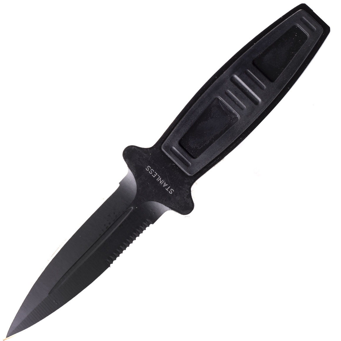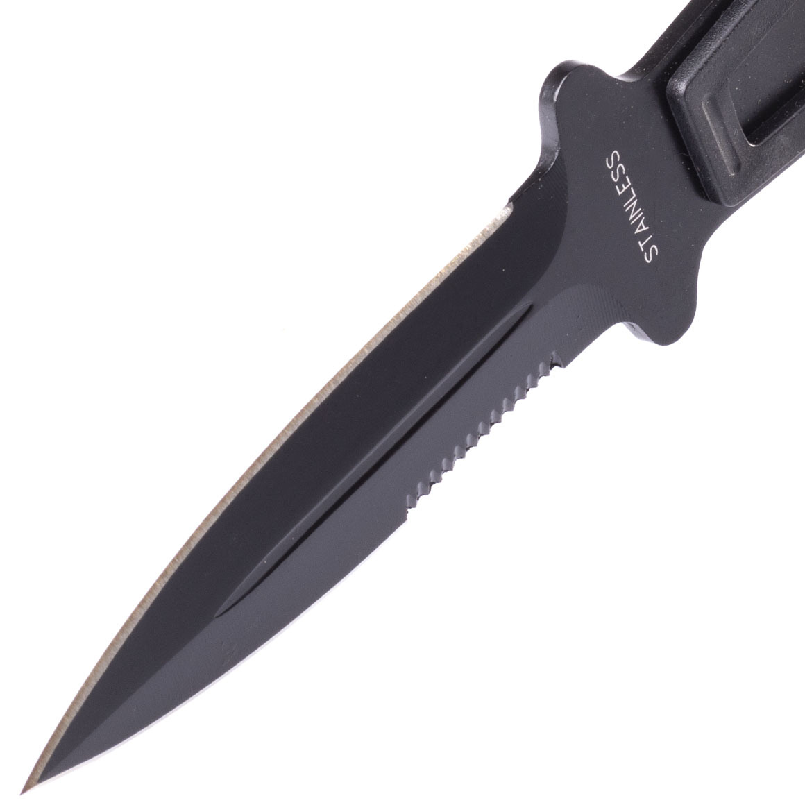 Nůž má skvělý design - je vyroben z jednoho kusu oceli. Jeho povrch je eloxovaný, díky čemuž neodráží světlo ani při silném slunečním světle a jeho odolnost proti korozi se navíc zvyšuje. Nůž se vyznačuje dlouhou, úzkou a špičatou čepelí. Podél čepele jsou žebra, které zvyšují pevnost. Čepel je oboustranná, zaostřena v úhlu, což zaručuje ostrost a odolnost vůči otupení. Rukojeť je kovová část nože potažena vysoce kvalitní gumou s velmi dobrou přilnavostí pro klasickou manipulaci i házení. Oboustranný chránič rukou zabraňuje sklouznutí ruky po čepeli.