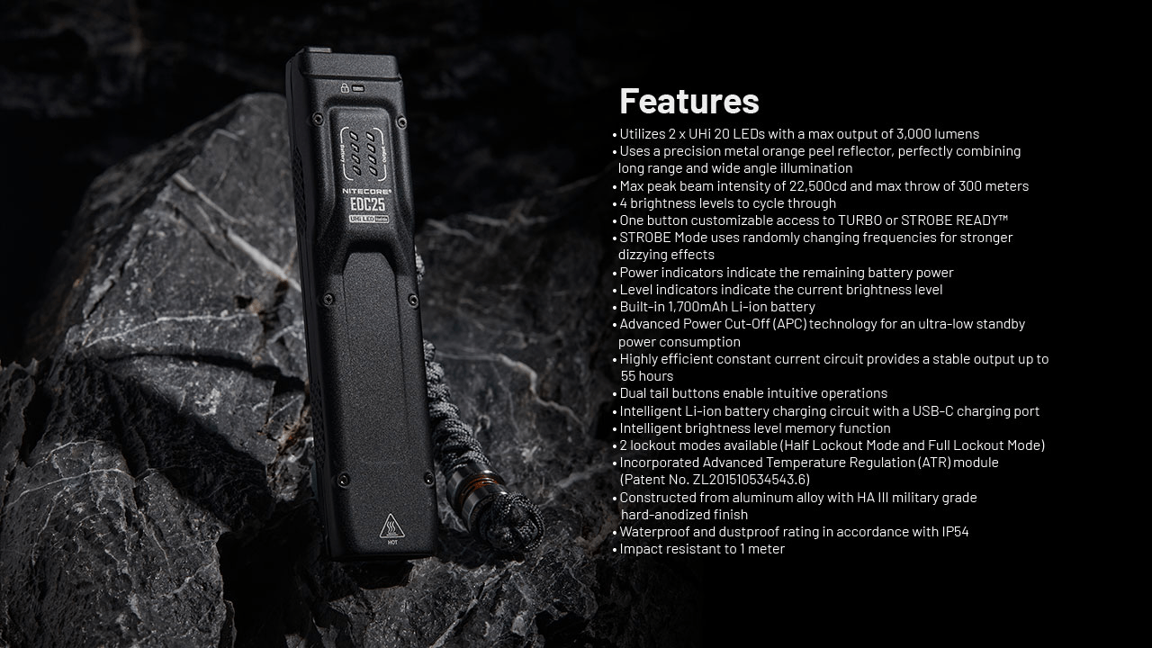 Nitecore EDC25 představuje jednu z nejvýkonnějších a nejkompaktnějších baterek na trhu s působivým výkonem až 3000 lumenů a dosvitem až 300 metrů.