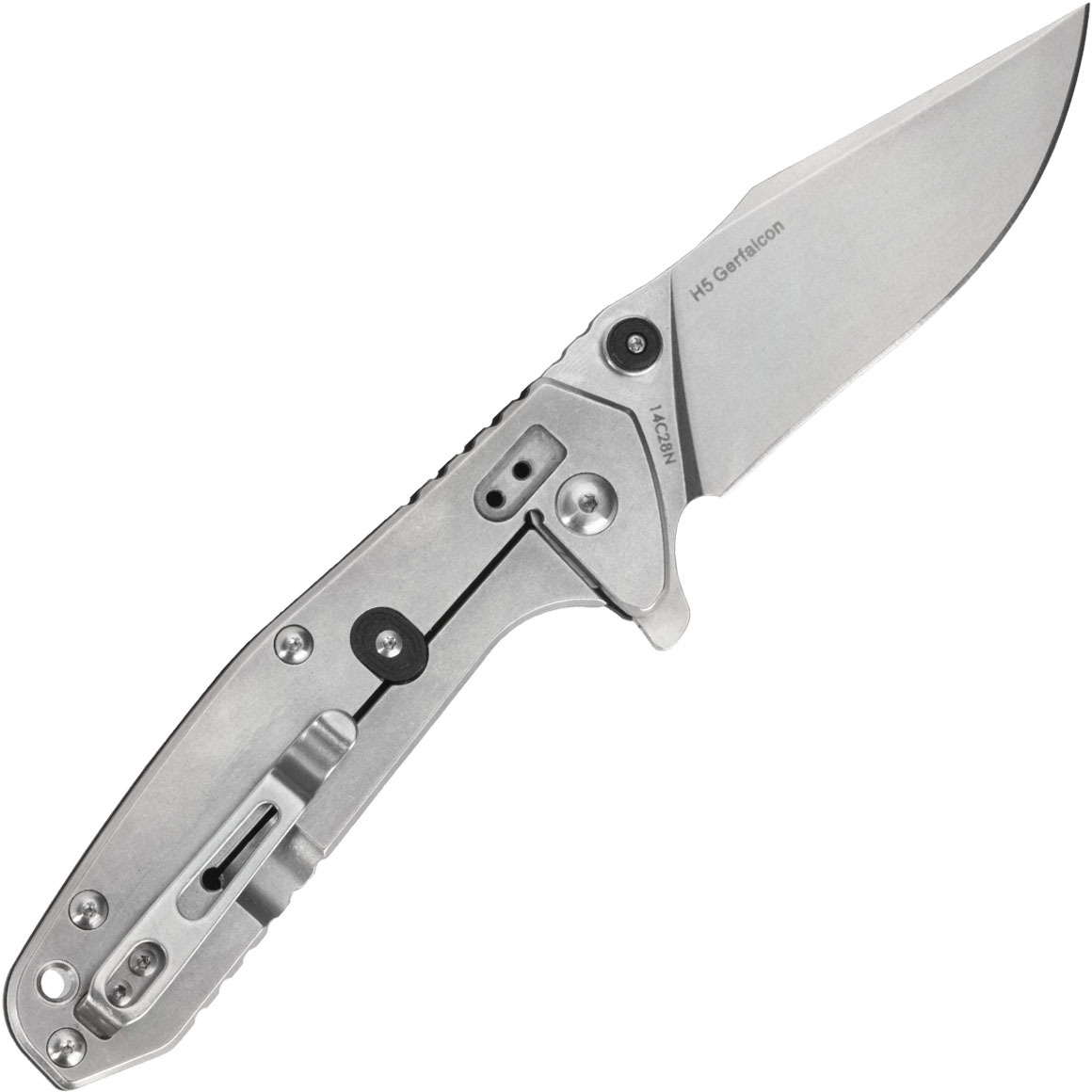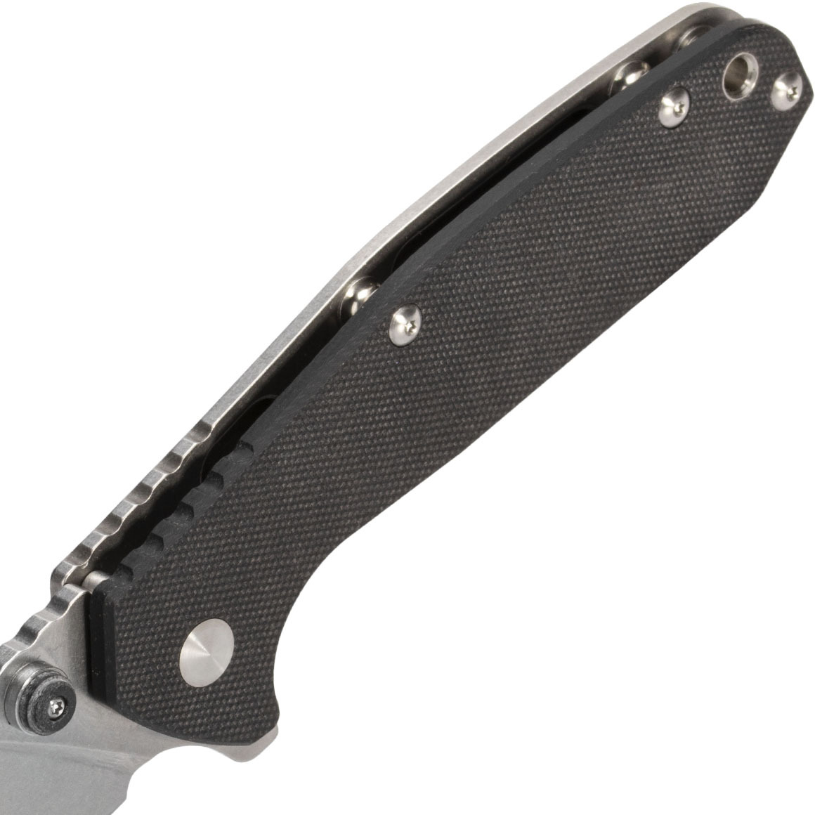 Kompaktní nůž z nerezavějící oceli s redukovanou hmotností a sníženou hmotností s čepelí a palcem. Přední váhy G10. Oboustranná spona (sklopení nahoru / sklopení dolů). Čiré broušené kotouče 14C28N Sandvik s povrchovou úpravou stonewashed. Černé váhy G10.