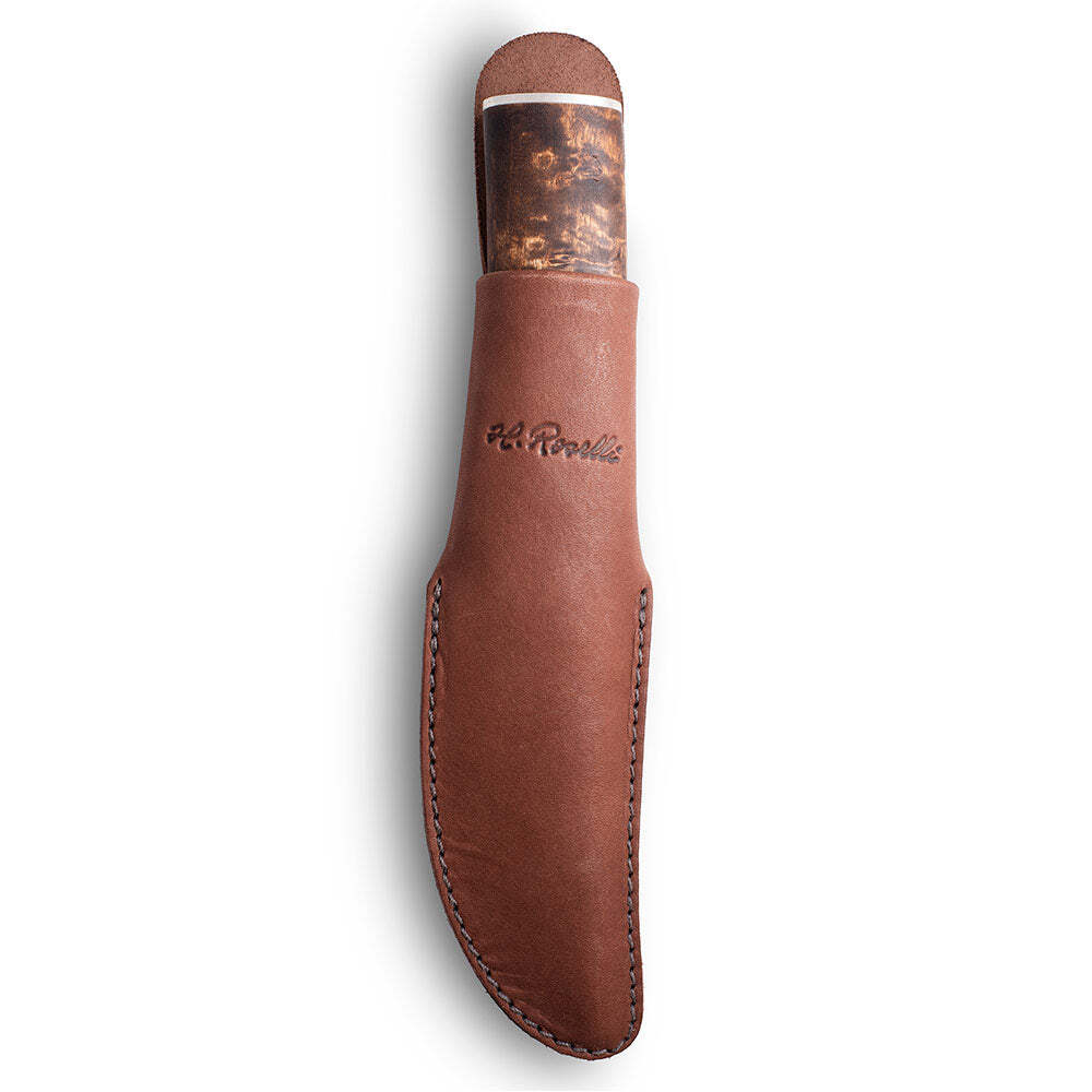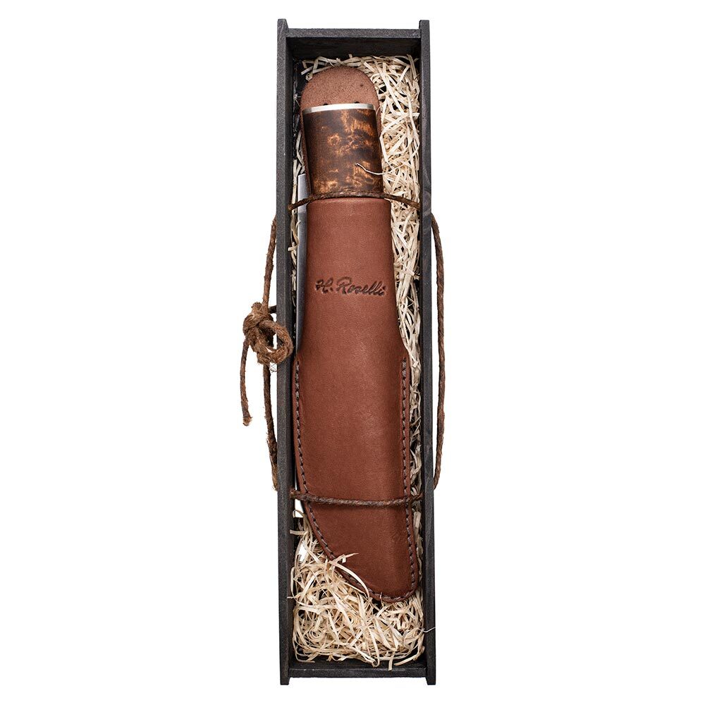 Dodává se s ručně vyrobeným pouzdrem z tmavé finské kůže.