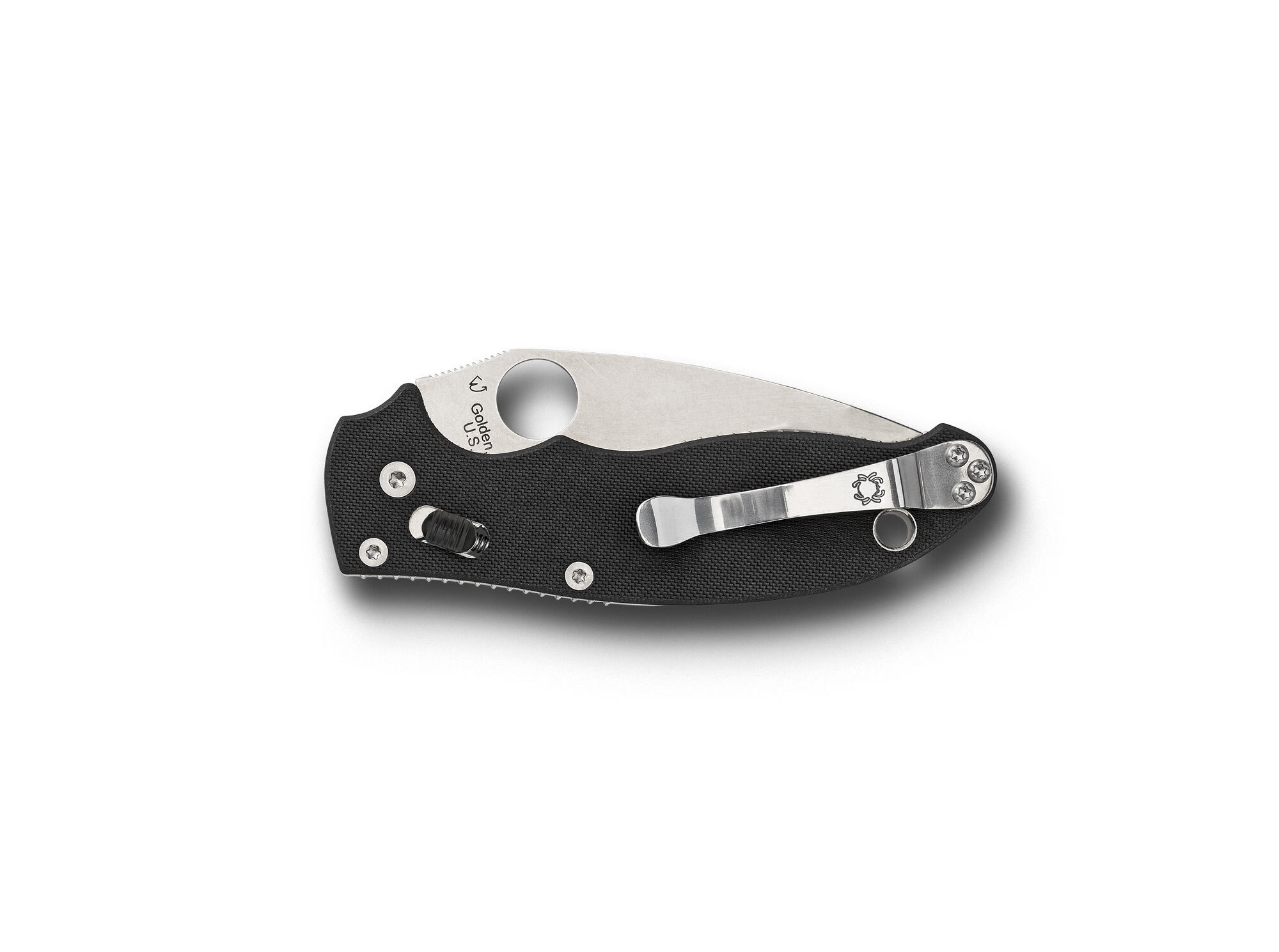 Každodenní zavírací nůž Spyderco Manix 2 Plain má čepel s hladkou hranou z oceli CPM-S-30V se zámkem s kuličkového ložiska, otevírá se dírou v čepeli. Rukojeť je z černého G10 s dírkou na šňůrku a sponou na kapsy.