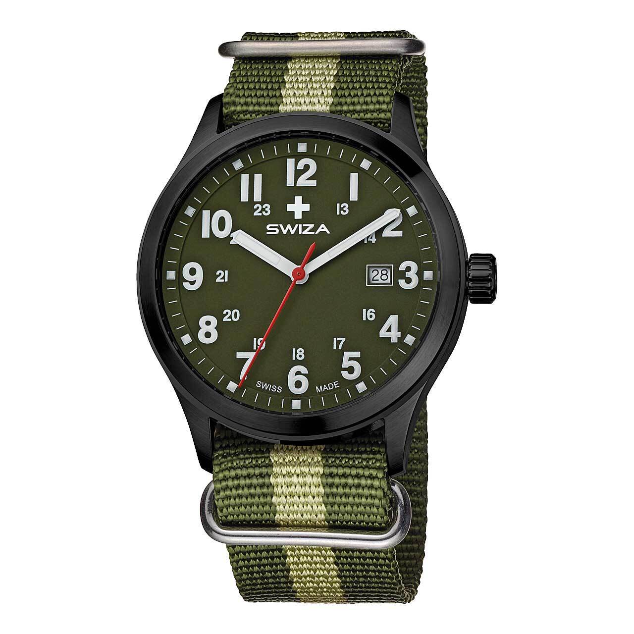 Náramkové hodinky Swiza Kretos Gent 78032- Olive pro dobrodruhy i pro každodenní použití. Hodinky jsou vyrobeny z minerálního skla potaženého safírem, zapouzdřené do sportovního estetického pouzdra z nerezavějící oceli 316L s průměrem 42 mm. Pouzdro je vodotěsné do tlaku 100 metrů. Luminiscenční ruce a arabské číslice s povlakem Super-LumiNova optimalizují čitelnost času. Nylonový náramek s přezkami z nerezavějící oceli, očko na náramek je široké 22 mm.