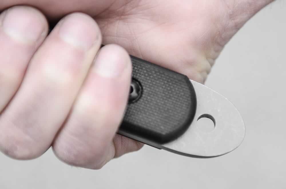 Mírný clip point s kloubem poskytuje velkou schopnost průniku. Je lehký a svižný, díky čemuž se snadno přenáší a je vynikající pro rychlé řezné řezy. Štípač na zádech dává uživateli další možnost úderu v obranné / bojové situaci.