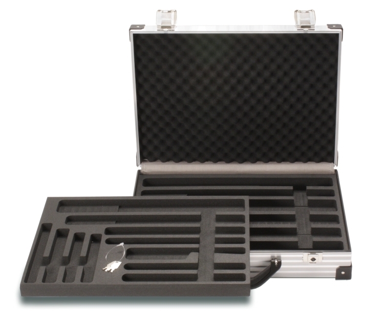 Kuchařský kufřík Wüsthof vyrobený z hliníku a syntetického materiálu, se dvěma vložkami. Vhodný na 18 ks nožů. Prodává se bez vybavení.