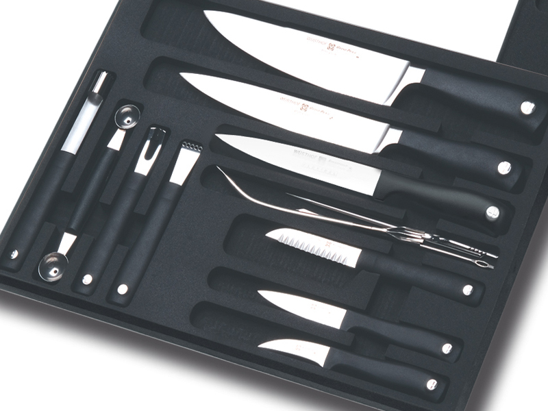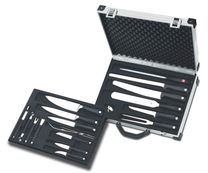 Hliníkový kufřík, určený nejen pro šéfkuchaře na cestách, slouží jako perfektní možnost uložení nožů. Včetně špičkových nožů ze série GRAND PRIX II a Silverpoint s příslušenstvím. Nože mají ergonomické rukojeti. Rozměry kufříku: 44 cm x 32 cm v 9 cm (dxšxv)